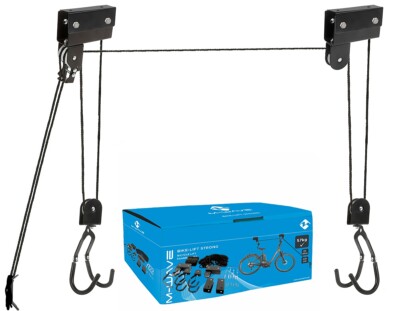 Один из самых надежных потолочных держателей велосипеда, способен выдержать вес до 57 кг. Крепление к потолку до 4м, подходит для электро-велосипедов. Изготовлен из стали. Весь необходимый крепеж в комплекте. Также подходит для хранения крупногабаритных предметов: стремянки, автобагажников и т.д.