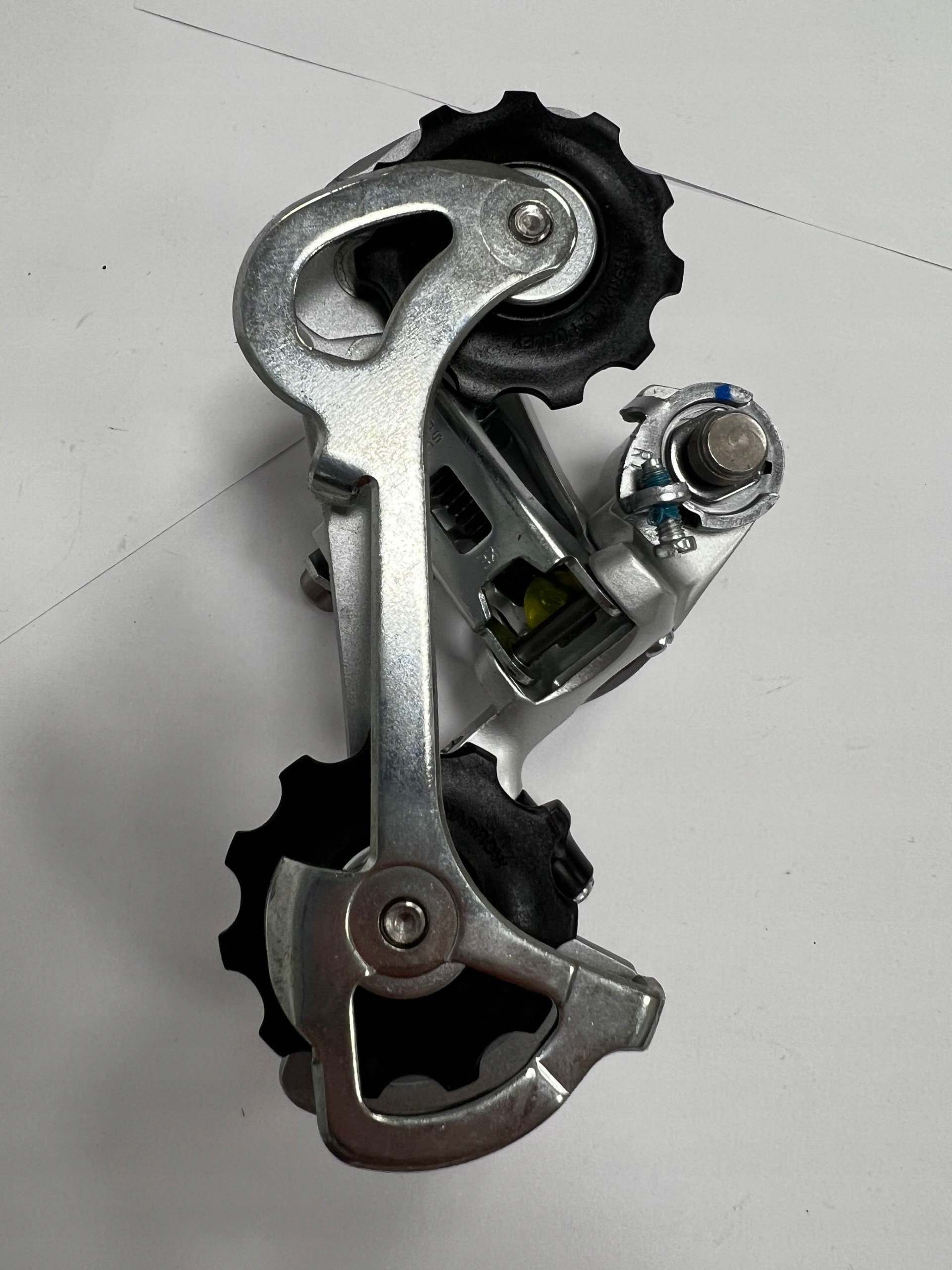 Переключатель имеет конструкцию средней лапки (GS) с 11-зубчатыми роликами и фторированными штифтами для еще более плавного вращения.